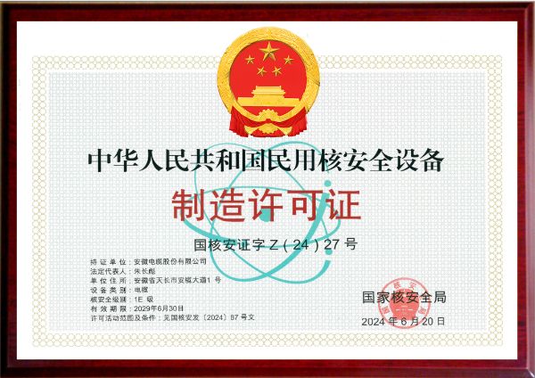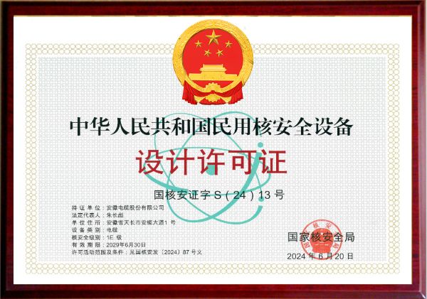 行业率先获得核级电缆设计和制造许可